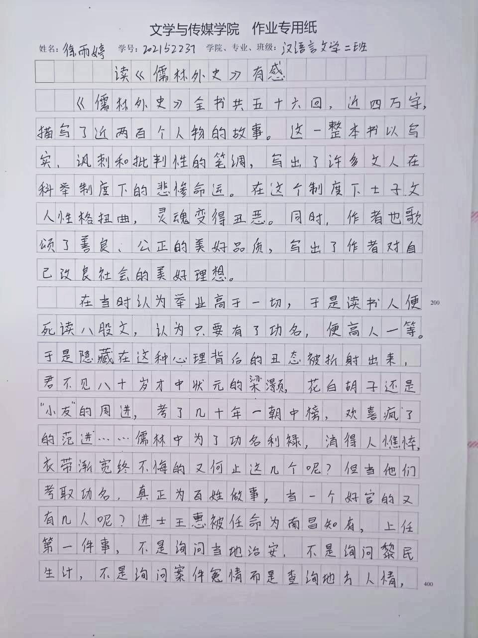 2021级汉语言文学二班徐雨婷