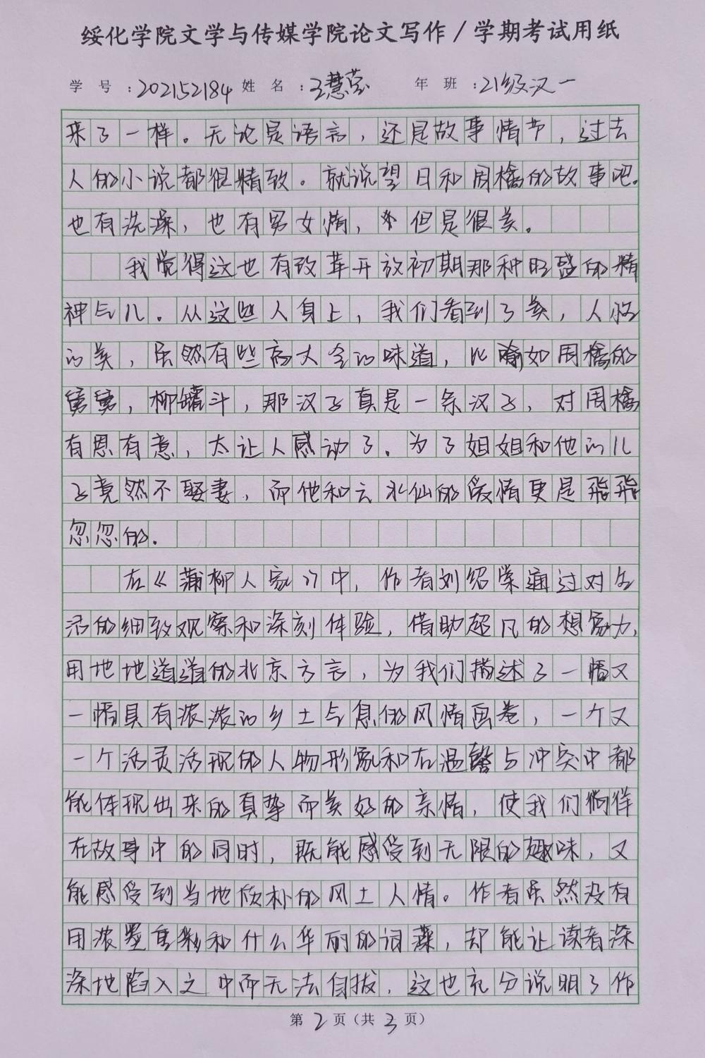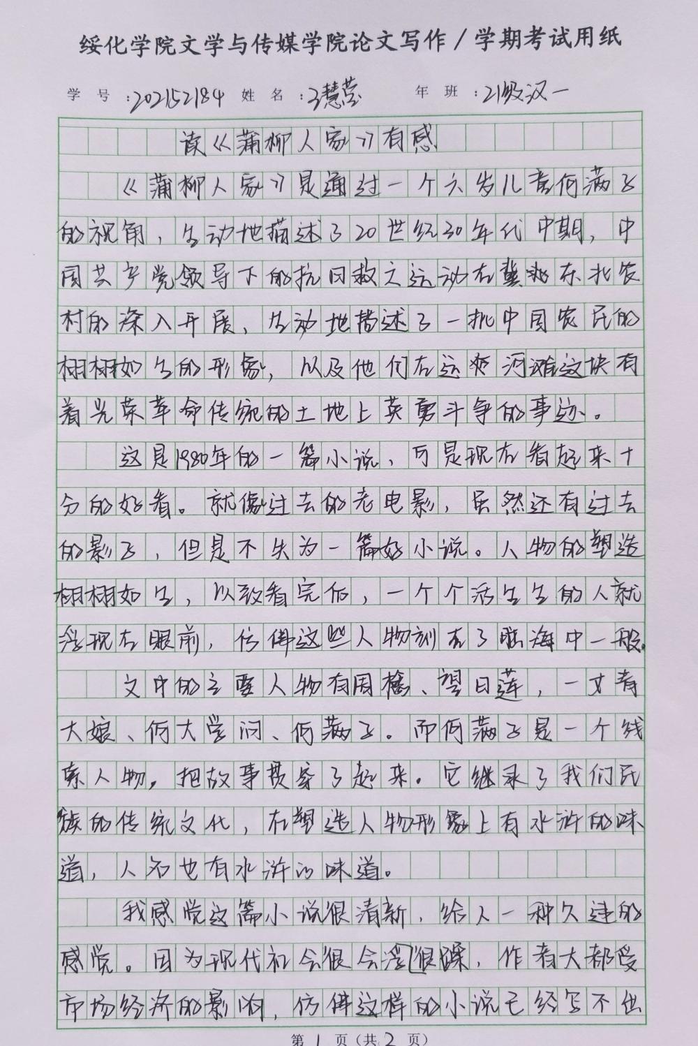2021级汉语言文学一班王慧莹