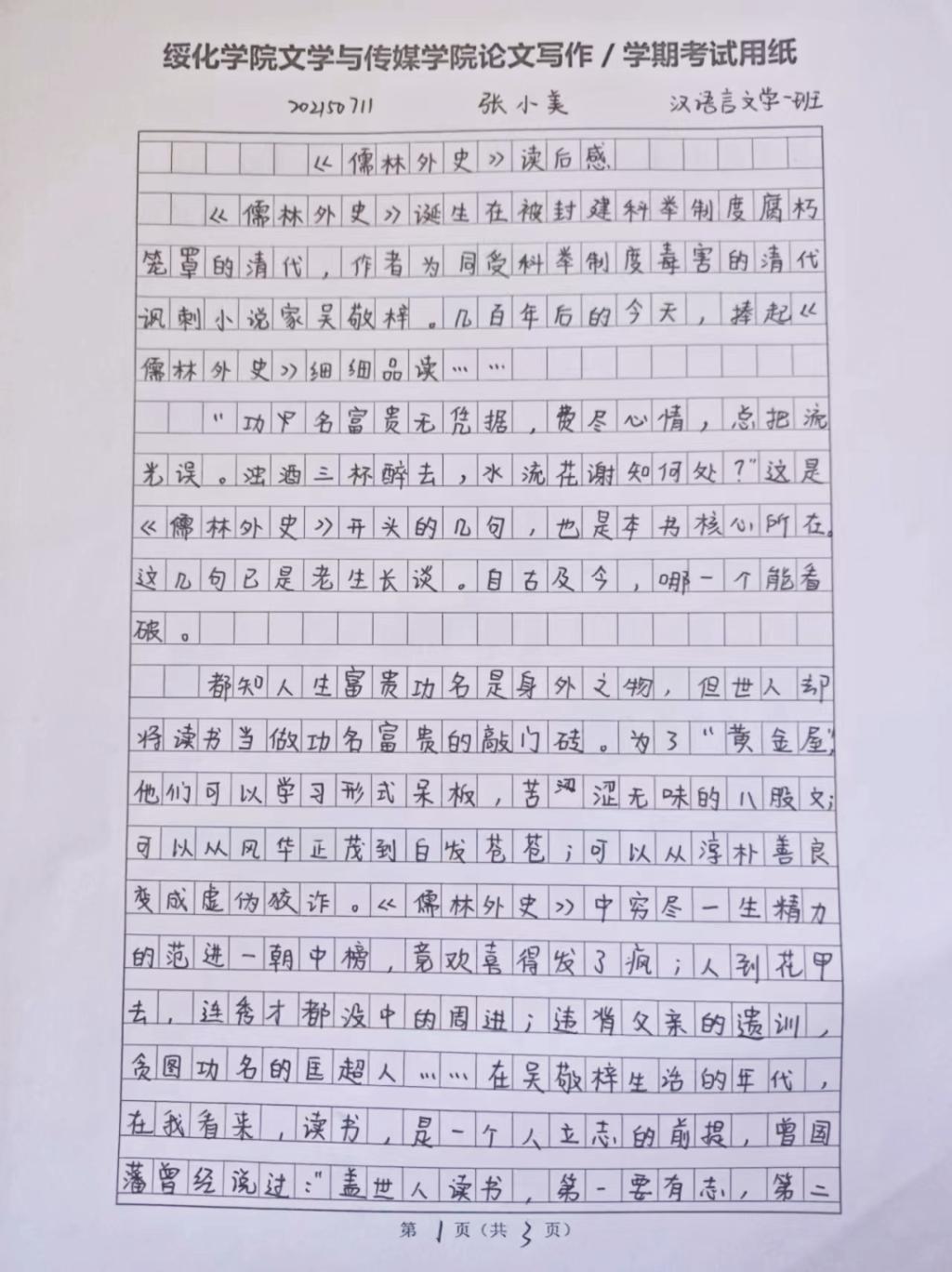 2021级汉语言文学一班张小美
