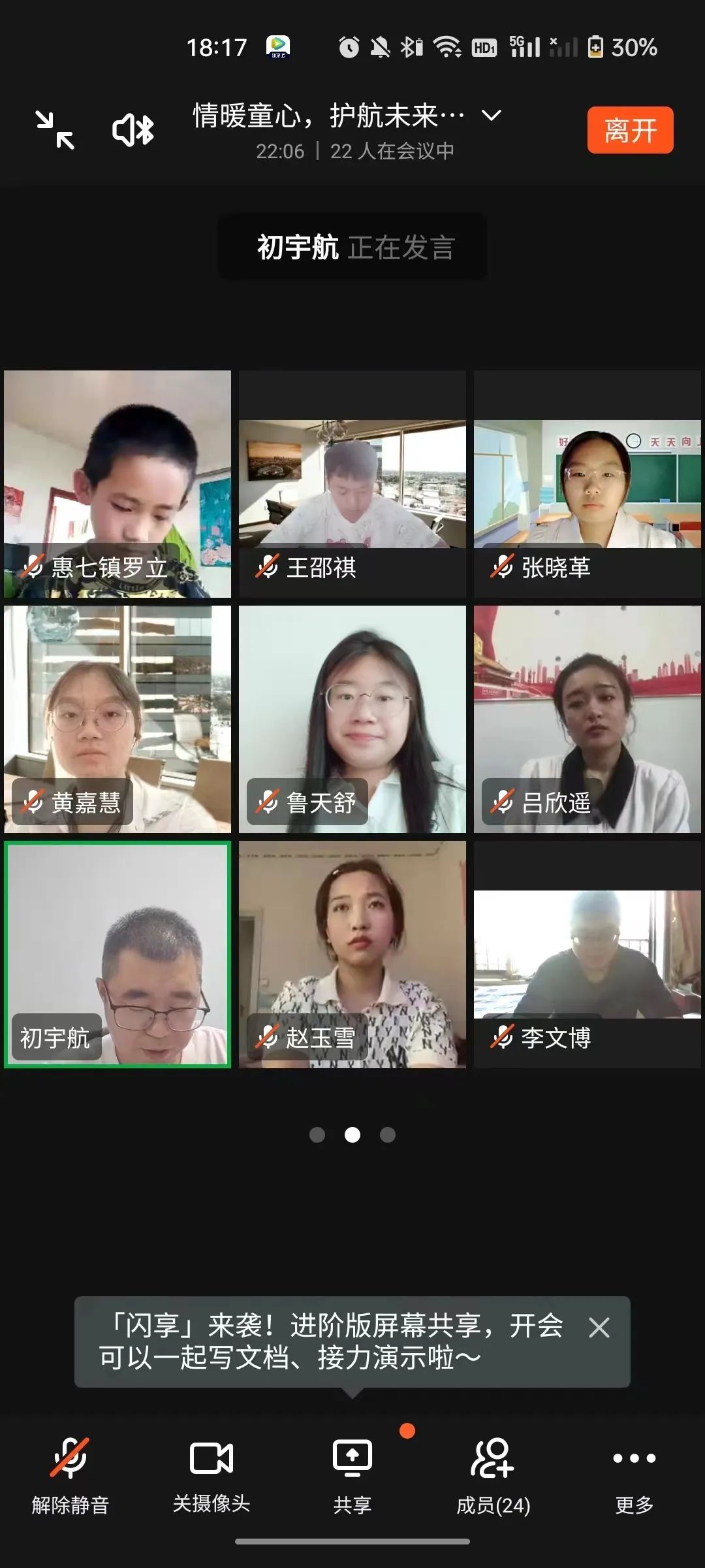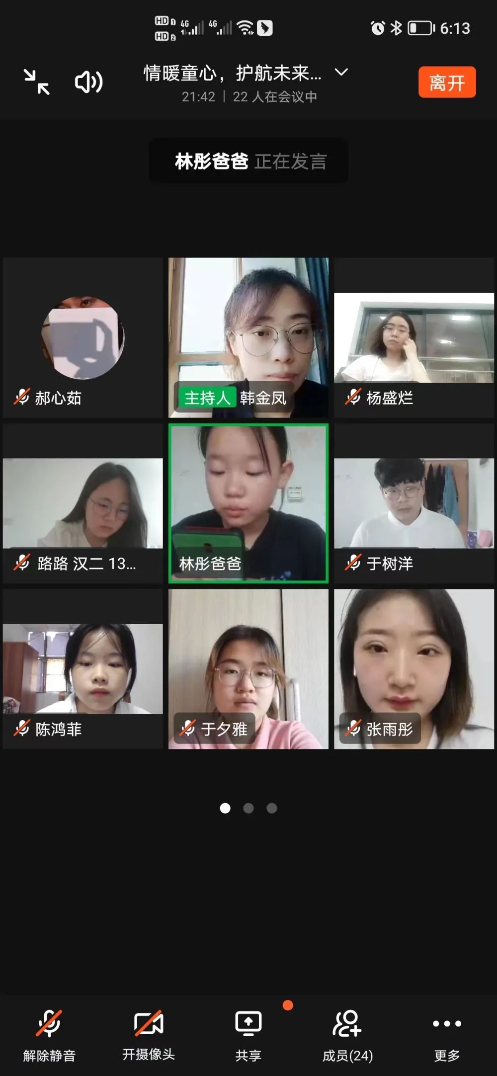 为深入学习贯彻习近平总书记关于青年工作的重要思想,引导和帮助广大青年学生在社会课堂中“受教育、长才干、作贡献”,更好地发挥共青团组织力、引领力、服务力和贡献度,巩固我校“五个关爱”社会实践品牌活动成果,培育学生志愿服务意识,7月11日下午,万象城官网特在钉钉线上平台举行“情暖童心,护航未来——万象城娱乐awc线路与共青团望奎县委关爱留守儿童见面会”。共青团望奎县团县委书记初宇航、团县委学少部负责人吕欣遥、望奎县留守儿童代表,万象城娱乐awc线路学生志愿者服务队全体成员参加本次会议。会议由万象城娱乐awc线路团总支负责人韩金凤主持。