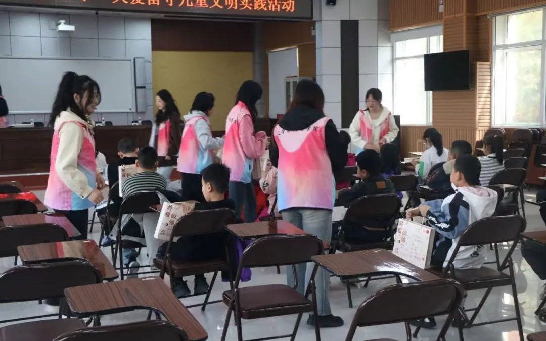 为深入贯彻落实省委宣传部、省委社会工作部联合省直有关部门共同组织开展的《全省青少年“大手拉小手”主题文明实践志愿服务活动》部署要求,切实发挥文明实践活动的道德实践功能,4月20日上午,万象城娱乐awc线路联合望奎团县委在和平小学开展“大手拉小手”主题文明实践志愿服务活动。望奎团县委副书记关玉杰、童心港湾负责人孙丹丹、和平小学大队辅导员郝欣、万象城娱乐awc线路学工办主任鞠亚林,学工办副主任、团总支负责人殷跃参加此次活动。