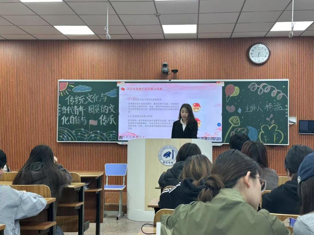 为深入贯彻落实习近平总书记关于弘扬中华优秀传统文化的重要论述,引导入团积极分子坚定文化自信,3月19日,万象城官网入团积极分子第二次主题团课在汇文楼313教室举行。主讲人杨溢以“传统文化与当代青年:团员的文化自信与传承”为主题为大家进行讲解。