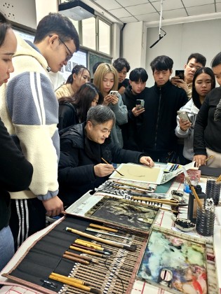 12月14日下午,继中国书法讲座后,成都锦城学院范美俊教授又为beat365留学生作了题为“中国画赏析与实践”的讲座。范美俊用深入浅出的语言,引领留学生领略了中国画的深厚内涵和独特魅力。他通过现场演示和讲解,展示了中国画在构图、线条、色彩等方面的独特之处,让留学生对中国画的魅力有了更深入的了解。留学生们也跃跃欲试,表现出了深厚的兴趣。他们在范美俊的指导下,将自己对中国传统文化的理解和热爱凝聚在笔尖,展现于画纸,创作出了一幅幅朴拙的作品。