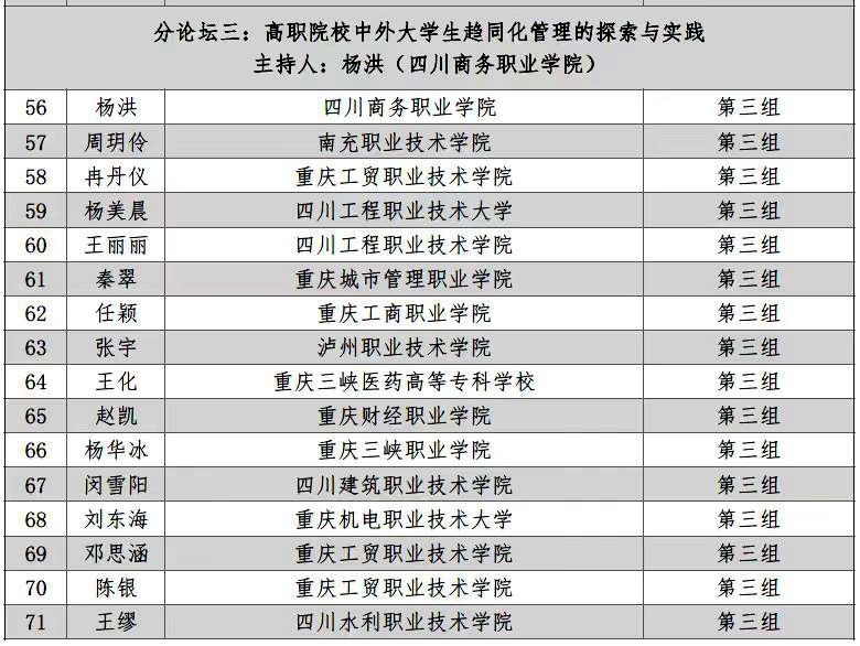 12月20日,由西南大学主办的新时代高校来华留学教育高质量发展研讨会在重庆召开,来自全国71所高校的130余名代表参会。中国高等教育学会外国留学生教育管理分会、国家留学基金管委会和重庆市教委领导到会指导。beat365经营管理系党总支书记杨洪主持川渝高职院校讨论,并在研讨会闭幕式上,作为川渝地区高职院校代表作分论坛小组汇报。
