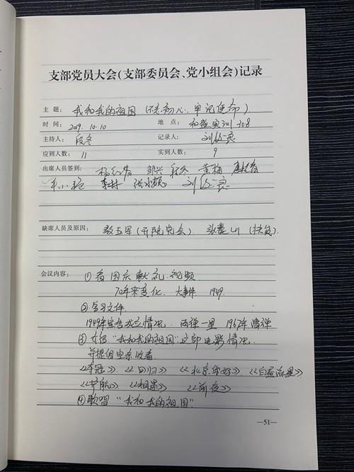 10月10日,实训中心党支部在和盛校区组织全体党员同志开展支部主题党日活动——我和我的祖国,活动由段冬主持。