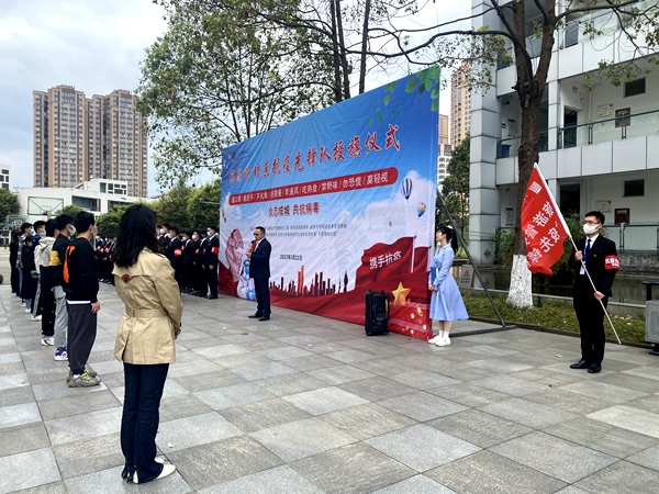 仪式上,系党总支书记陈根元强调了目前全国疫情形势的严峻性,也阐述了旅游管理系抗疫先锋队成立的必要性和紧迫性,希望以学生党员为骨干的先锋队,能够带动全系甚至是全院的师生更加重视疫情防控,更要把防控措施走深走实,入细入微。仪式第二项是系主任张莉将“抗疫先锋队”队旗交到队长何忠明手里,何忠明带领28名队员进行了庄严的宣誓。