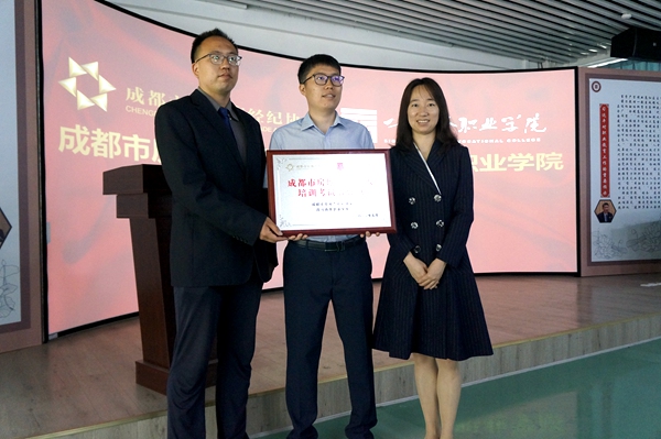 马景卫致辞并向学院授牌。马景卫指出,此次授牌是成都房地产经纪协会第一次向成都高校授予培训考试合作点,具有重要的意义。希望通过这次尝试,协会与学院加强职业教育,在严格执行行业标准下,帮助更多同学取得进入成都房地产中介的“入门证书”。