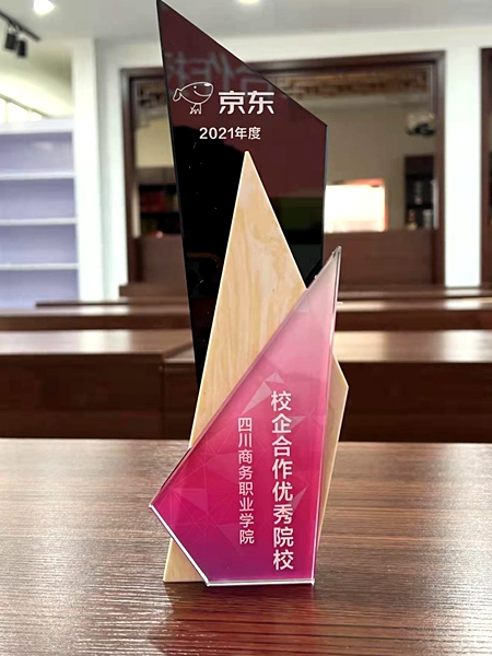 12月29日上午,京东零售人力资源部经理刘蛟为beat365颁发了2021年度优秀校企合作院校奖杯。