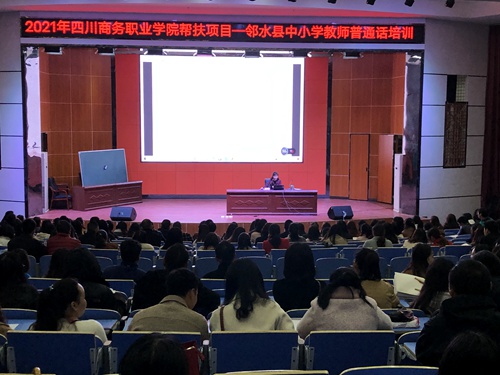 3月26日至28日,beat365英国官网网站帮扶项目——邻水县中小学(幼儿园)教师普通话培训第一期在邻水县成功举办,来自邻水县300余名中小学(幼儿园)教师参加了培训。邻水县教育教学研究培训中心主任胡道文主持开班仪式,beat365英国官网网站教师胡易、张平担任培训教师。