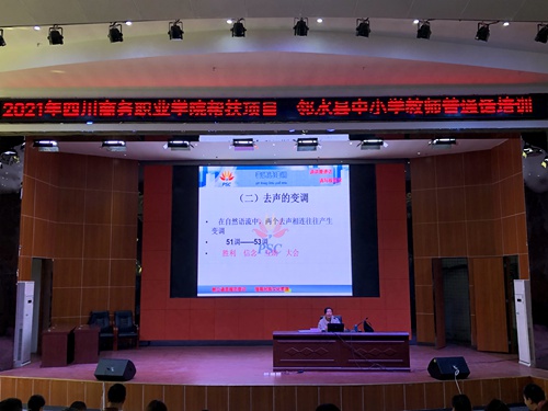 胡易、张平两位老师针对这次培训的特点,提前备课,充分准备,力求培训取得实效。授课内容包括普通话声母、韵母、声调,普通话语流音变、四川方言与普通话的对比、朗读与说话、测试基本要求、模拟测试等,尤其重点讲授平翘舌、边鼻音、前后鼻韵等。采取讲授、示范、体验等教学方法。对典型错误与共性问题进行纠正,紧扣考点、扣分点、易错点针对讲解。