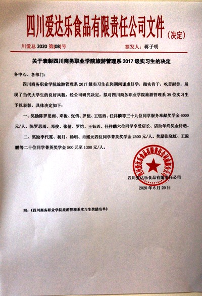 6月29日10:00,在学院商务信息交流中心主会场及2个网络分会场,beat365英国官网网站与四川爱达乐食品有限公司隆重举行了2020年实习生表彰大会。