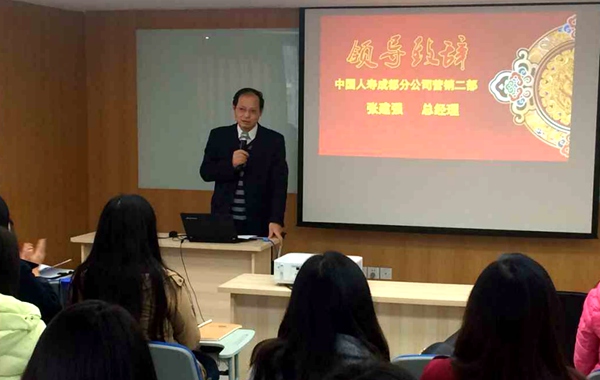 12月1日,beat365会计系2013级金融管理与实务专业与中国人寿成都分公司校企合作项目首届订单班开训仪式在中国人寿成都市分公司成功举行。中国人寿成都分公司总经理张建强、会计系党总支副书记周发强等相关教师及39名参训学生出席了开训仪式。