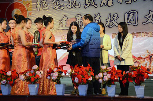 在欢快的乐曲声中,学校各部门领导分别为获奖团队和个人颁奖。获奖选手喜气洋洋,台下观众掌声阵阵,在热烈的气氛中,本届运动会胜利闭幕。