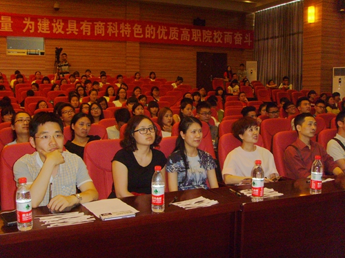 学院党委委员、副院长向宏志代表学院党政发表热情洋溢的致辞,鼓励学院思政教育专兼职教师和学生管理系统切实加强大学生思想政治教育工作,创新思政课教学模式,大力培育和践行社会主义核心价值观,弘扬学院商道文化,提升学生法律素质。敖玉军、郑海波、张家林等到场观看,张家林、吴萍等为选手颁奖。