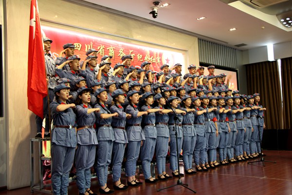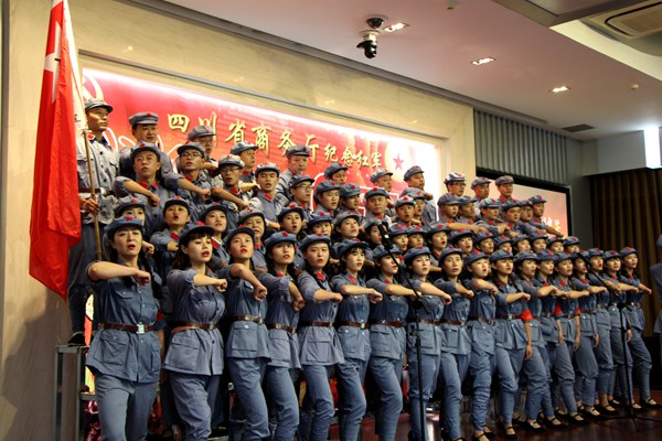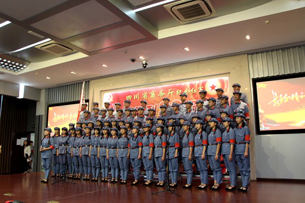 9月29日下午2:00,四川省商务厅纪念红军长征胜利80周年红歌会在厅机关隆重举行,beat365全体院级领导及部分师生代表近80人参加了本次红歌会。历时一个多月的精心编排和悉心准备,beat365党委宣传部、工会负责组织并选送的大合唱《突破封锁线》排在第九个节目出场,师生们以深情的朗诵、优美的歌声、甜美的笑容、和谐的动作、唯美的画面赢得了全场观众雷鸣般的掌声,给大家留下了深刻的印象,最终取得一等奖的优异成绩。