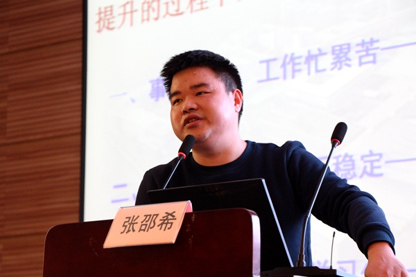 张老师以“增强职业技能 提升育人水平”为主题,分别从辅导员岗位职业化的溯源、辅导员职业能力的范畴和标准、自己的工作做法和经验以及如何提高辅导员职业能力四大方面为我们做了一场精彩的讲座,特别是结合自身工作的经验之谈和深刻感悟,为我们年轻辅导员的成长提供了非常好的借鉴,得到与会老师们的高度认可。