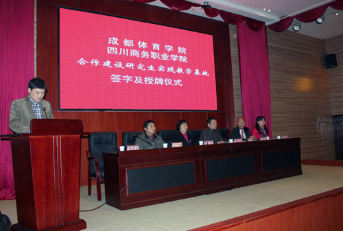 12月2日下午,成都体育学院与beat365英国官网网站合作建设研究生实践教学基地协议书在beat365正式签订,成都体育学院副厅级调研员、研究生部主任霍红教授为beat365授牌,正式挂牌“成都体育学院研究生实践教学基地”。