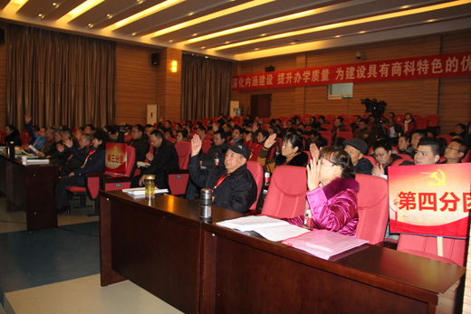 张军同志受学院第二次党代会筹备工作领导小组委托,做大会筹备工作情况报告和代表资格审查报告。