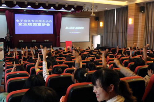 宣讲中,企业各自以简洁形象的语言、照片、明确的数据向电子商务的同学们针对企业概况、企业产品、职位需求与实习定位做了精炼且详尽的介绍。在提问互动环节,同学们积极发言,纷纷针对三家公司的职位、工作环境、录用者福利待遇以及电子商务专业学生在行业内的发展前景等问题提出疑惑,企业代表也针对问题作出了详细而生动的解答,使学生对三家公司及电子商务专业的工作方向有了一个相对完整和全面的认识,现场气氛十分活跃。