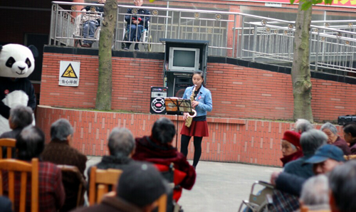本次慰问环节的志愿服务由三部分组成。志愿者们在室内帮助老人打扫卫生,美化环境;在室外陪老人聊天,阅读书报;学院文娱部同学表演唱歌、朗诵、吉他、萨克斯演奏等,这些让老人们感受到温暖并露出笑容。