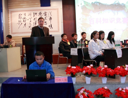 决赛现场,官培生校长首先发表了热情洋溢的讲话,并给同学们提出了殷切的希望,他强调“大学的任务之一,即为培养学生的“博、雅”品质。“博”为广博的知识,“雅”为较高的素养。”他提出将把百科知识竞赛做成学院每学期的一个常规活动,让更多的佼佼者从竞赛中脱颖而出。并寄语全体师生在未来的校园学习和生活中,继续发扬刻苦专研,热爱学习的好风尚。