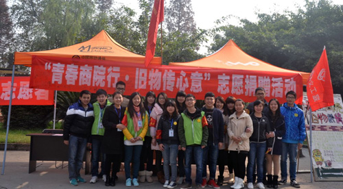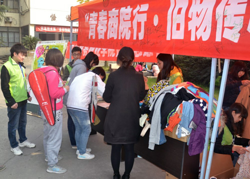 冬至情亦至,天寒人未寒。针对2011级同学即将离校实习,有不少旧衣物需要处理的情况,为实现旧衣物、学习用品等的循环利用,院团委青年志愿服务队联合成都市义工联在校园内设点,举办了“爱驻商院、旧物浓情”爱心公益捐赠活动。活动旨在提倡物尽其用,搭建可循环资源与需求之间的对接桥梁。