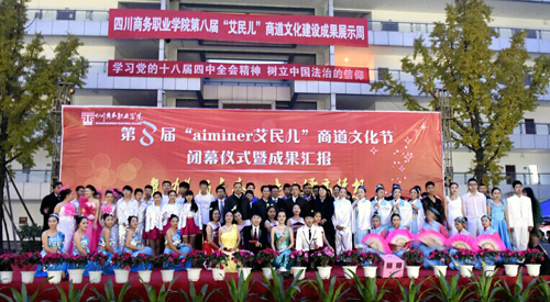 为深入学习贯彻党的十八届四中全会精神,积极推进beat365商道文化建设,喜迎beat365第二次党代会的召开,在全院师生的共同努力下,beat365第八届商道文化节于11月20日圆满闭幕。省商务厅副巡视员呙相林、贸发处副处长何远建、成都艾民儿皮制品有限责任公司董事长刘琼英及学院院级领导出席了闭幕式。