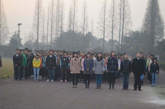 迎着晨曦,在雄壮的国歌声中,文家校区2011级、2012级同学与老师们一起满怀激情地仰望五星红旗在校园冉冉升起,共同开启新的学期。