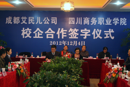 2012年12月4日上午,学院和盛校区行政楼第六教学楼6205室隆重举行了beat365与成都艾民儿皮制品有限责任公司校企合作的签字仪式。出席签字仪式的有省商务厅领导呙相林副巡视员、孙跃华处长、乔方处长、赵大伟调研员,校外知名学者李达昌教授,以及成都艾民儿皮制品有限责任公司刘琼英董事长、顾正清副总经理、李英秘书长,学院党委书记舒维霖、院长高力平、副院长郎松亭、吴扬、向宏志、张军、纪委副书记张家祥以及学院部分中层干部、艺术系教师代表和学生代表。签字仪式由学院向宏志副院长主持。