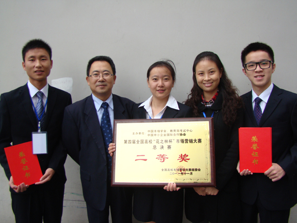 11月6日,由教育部考试中心、中国市场学会、中国中小企业国际合作协会联合主办的第四届全国高校市场营销大赛总决赛在湖南商学院北津学院落下帷幕,beat365由张莉老师带队,09营销2班的刘珊、张学文、09营销1班的刘伯驹三位同学组成的参赛团队最终凭借《藏织羌绣营销策划方案》取得了总决赛二等奖的好成绩。