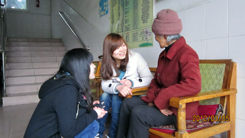 志愿者到达敬老院,即按照事先的分组进入不同的楼层开始了志愿敬老活动。有的陪老人们聊天,有的为老人打扫房间卫生,有的搀扶着老人在院里散步,有的为老人洗脚、捶背、擦脸,还有几名志愿者即兴唱起了红色革命歌曲,吟起了诗歌,跳起了舞,老人们脸上洋溢出感动的笑容,整个场面其乐融融、暖意无限。