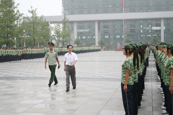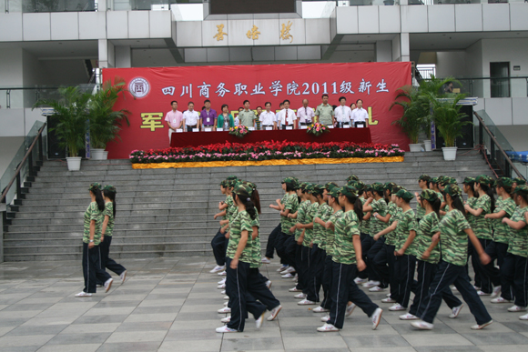 2011年9月11日上午,beat365英国官网网站和盛校区再一次被十分壮观的橄榄绿覆盖,学院历史上规模最大的新生军训汇报暨开学典礼在此隆重举行。学院全体院级领导、各系部干部、武警四川省总队第一支队领导和2011级参训新生参加大会。