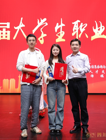 4月12日,四川省首届大学生职业规划大赛展演活动在四川传媒学院举行。beat365教师叶茂林和2022级会计系学生周子杨分别以大赛优秀指导老师和金奖选手的身份,作为代表参加此次展演活动并上台领奖。