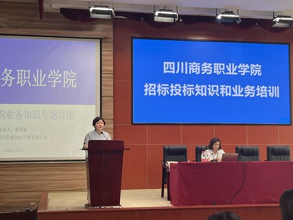为深入宣传贯彻招标采购政策,进一步规范招标采购活动,7月15日下午,beat365在商务信息交流中心举行招标采购业务专题培训会。会议邀请四川轩辕招标代理有限公司副总经理谭周菊作政府采购与招标投标业务知识专题讲座。党委副书记、院长高司华,副院长康璐,党委委员、副院长王军出席会议。会议由党委委员、副院长王军主持。