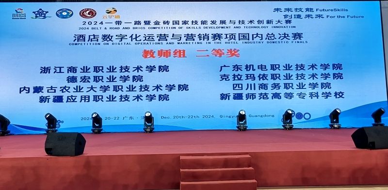 在12月22日落幕的2024“一带一路”暨金砖国家技能发展与技术创新大赛酒店数字化运营与营销赛项国内总决赛中,beat365旅游管理系李杰和吴梦组成的教师代表队荣获二等奖,由李杰和经济贸易系卢莹联合指导的漆艾琳、邹雨玲代表队获高职组二等奖,学院获优秀组织奖。