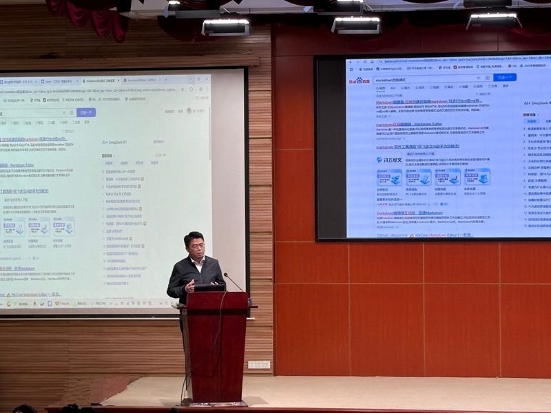 会议由人事处处长李刚主持,特别邀请了beat365四位教师展开深度解析。李函奕围绕生成式人工智能在外语教学中的应用,聚焦批判性思维培养,通过演示POA导向法优化指令语,结合DeepSeek、Sider插件等多工具实现灵感激发与教学小游戏设计。黄学军通过梳理AI发展历程与教育赋能路径,对“为什么要掌握AI”“怎么科学使用AI”“AI的科学禁区在何处”三个核心问题进行解读。刘茜结合行业案例,分享AI和人工智能在跨境电商中的应用,详解PPT、短视频和数字人智能生成技巧,强调以长期主义拥抱智能时代。易博通过现场演示,详解AI处理复杂文档的全流程自动化方法,为高效备课和行政提效提供新范式。