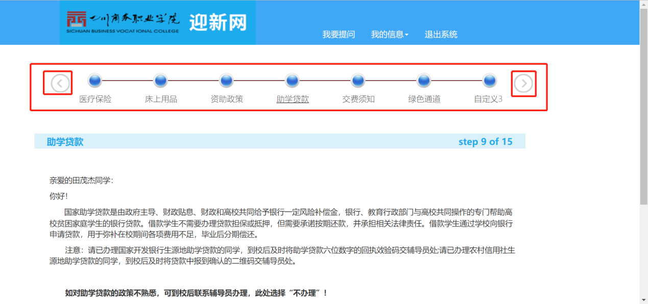 2、登录后可看到全部迎新环节,请按环节顺序逐一完成所有环节,即可完成网上报到。