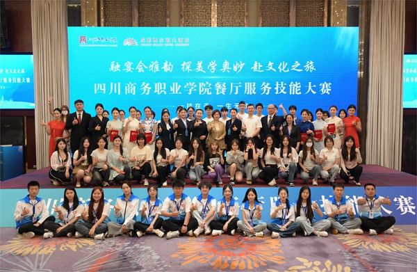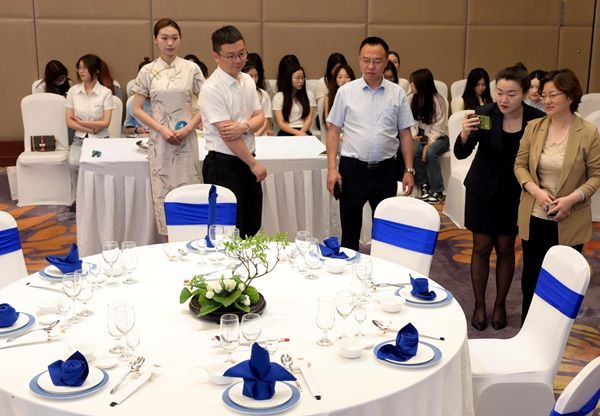 5月17日,由学院主办,旅游管理系联合成都费尔顿大酒店举办的“融宴会雅韵,探美学奥妙,赴文化之旅”学院餐厅服务技能大赛在成都费尔顿大酒店三楼宴会厅举行。学院党委委员、副院长王军莅临现场观看指导,特邀全国技术能手杜欣担任裁判长,旅游管理系领导、旅游管理系师生代表和成都费尔顿大酒店代表共90余人参加活动。