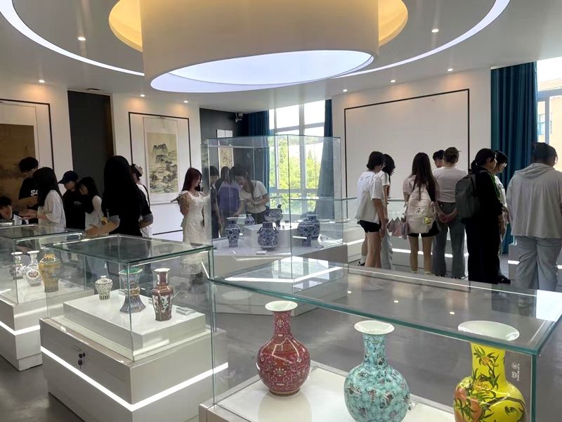 在四川艺术职业学院文化管理系(以下简称文管系)学生的专业导览下,beat365师生深入陶瓷类文物专题展区,系统观摩了从宋代青瓷到明清彩瓷的代表性展品。学生讲解员从历史溯源、工艺特色、文化价值等维度展开生动阐释,将静态文物转化为动态教学资源。beat365旅游管理专业学生通过聆听讲解、互动提问,不仅加深了对传统陶瓷艺术的理解,更深入思考了文物资源与旅游产业融合发展的创新方向。