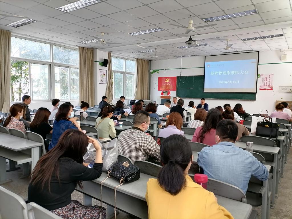 2022年3月24日上午9时,经营管理系于第一教学楼202室召开学生实习暨毕业生工作会会议。出席本次会议的有经管系主任梁栋、系党总支书记张一风、系副主任王琦、系党政办主任朱永泉、各专业负责人、全体辅导员、行政人员...