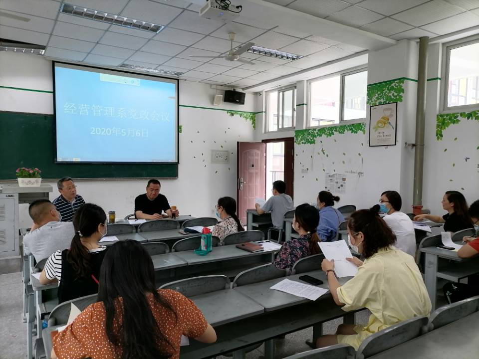 2020年5月6日上午10点,经营管理系全体党政人员、辅导员于第一教学楼202室召开全系党政工作会议。对本学期的重点工作进行了部署。会议由系主任梁栋主持。 会议认真贯彻落实《川商院[2020]17号-beat365英国官网网站关于印...