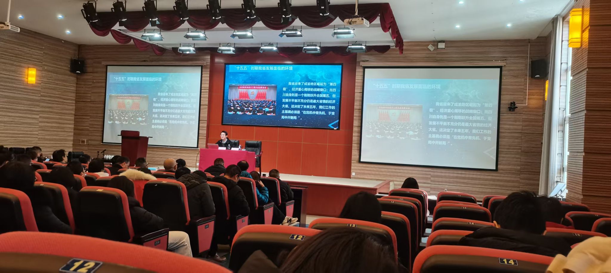 会议特别邀请四川大学马克思主义学院副教授、四川省中国特色社会主义理论体系研究中心研究员张晓磊作专题辅导报告。张晓磊以 “擘画十五五 谱写新篇章 —— 以党的二十届四中全会精神、省委十二届八次全会精神引领国家与四川发展” 为题,围绕党的二十届四中全会关于 “十五五” 时期发展的战略部署,结合省委十二届八次全会相关工作要求,系统解读了会议精神的核心要义与实践要求,为学院及我系对接国家战略、服务四川发展提供了清晰指引。