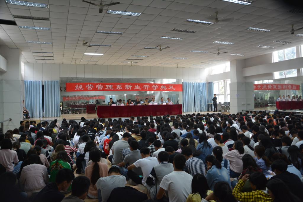 经营管理系在顺利开展迎新、新老生交流会、专业教育等一系列工作后,于2017年9月14日下午13:30,在学院第二、三教间一楼舞蹈厅隆重举行经营管理系2017级新生开学典礼。经营管理系主任梁栋,系党总支书记郑海波,系副主任王琦,系党政办主任朱永泉,各教研负责人、经管系全体行政人员以及新生辅导员、优秀学生代表参加了此次开学典礼,典礼由王琦副主任主持。