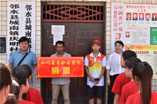 “住上好房子、过上好日子、养成好习惯、形成好风气”。7月10日,服务团一行走进邻水县城南镇磬明村,开始了为期3天的入村志愿实践,服务贫困户,陪伴留守儿童。磬明村拟定于今年“摘帽”,beat365派出李志勤老师任驻村干部,参与精准帮扶工作。11日上午,在磬明村村委会操场举行了一场暖心的捐赠交接仪式。在前期的需求调查基础上,学院本次集中捐赠了以乒乓球桌、篮球架、户外投影仪、家庭常用品为主的学习和生活用品,希望为留守儿童们创造更好的学习、生活环境,激励他们努力学习回报社会。“情暖童心,快乐暑期”,在交接仪式后,国学传统文化《弟子规》正式开课。整洁的教室里座无虚席,一张张稚气的小脸上,写满了认真和对新知识的强烈渴望。“坚持运动,健康相伴”,为丰富村民日常生活,加强身心锻炼,服务团组织专业志愿者教授村民打太极拳、跳健身舞,举办乒乓球比赛,让村民们在今后的空闲时间有更多的休闲方式,舒缓身心。夜晚降临,服务团为村民们播放励志等喜闻乐见的电影,倡导村民拒绝赌博,形成健康的娱乐休闲方式。向“四好村”建设迈进,从物质文明、精神文明两面出发。
