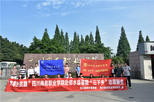 活动首日,服务团一行在烈日下深入邻水县,由艺术系赵捷、会计系马宁、信息系王钦书记带队前往牟家镇、合流镇等5个村,由团委张卡、经贸系李志勤、学生处赵紫曦老师带队前往观音桥镇、城南镇、城北镇等5个村,参与乡村实地调研、探访贫困户。在调研同时,主动宣讲总书记治国理政新思想新战略和我省第11次党代会重要精神。面对酷暑,同学们发扬共青团员不怕难、不怕苦的精神,在乡亲面前展示了当代学子的良好风貌。
