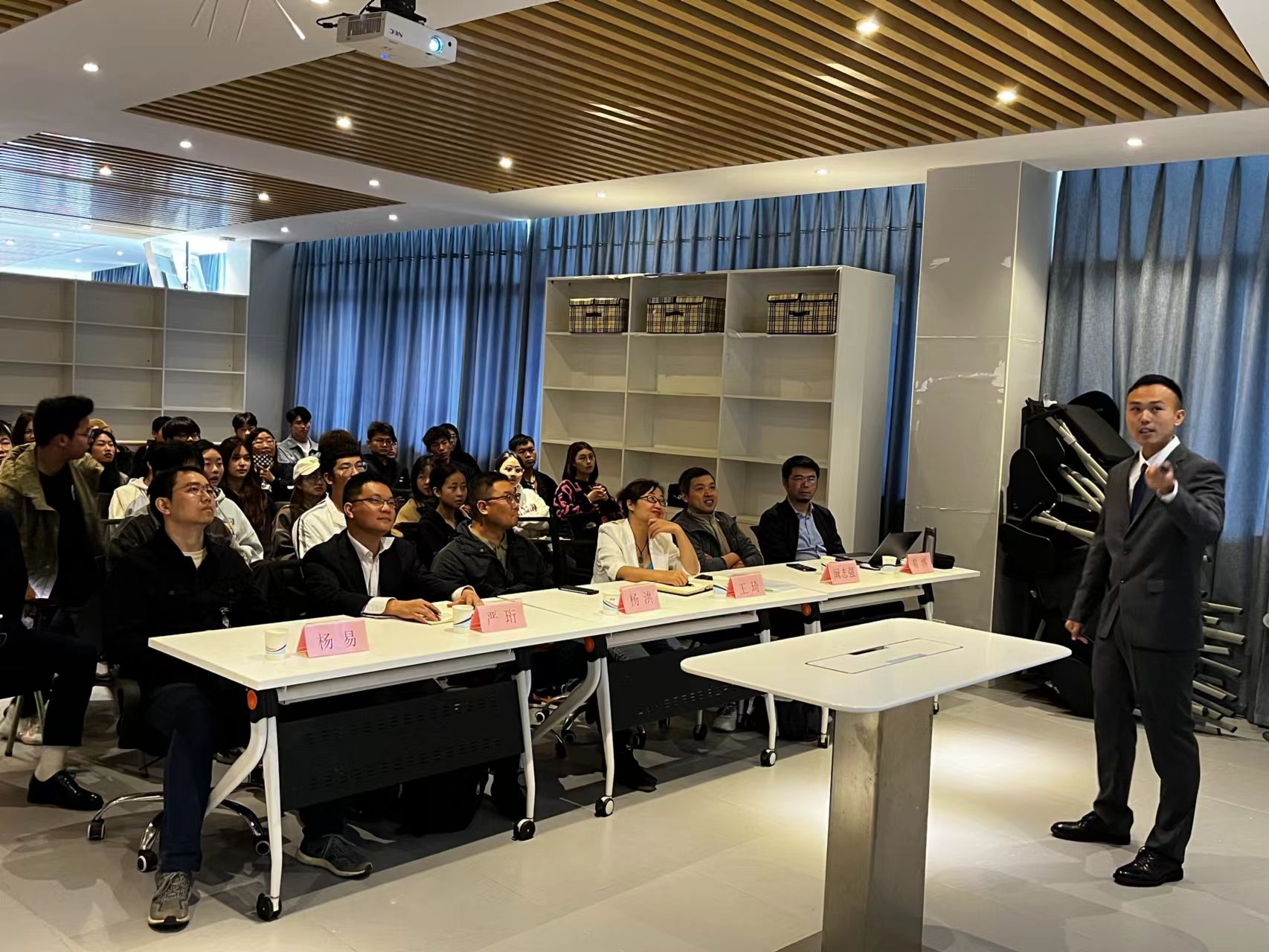 随后,创业园管委会的成员对各自负责的工作进行介绍,创业园各团队负责人分别上台从团队的组成和团队创业方向进行了介绍,让更多的老师和同学了解了创业园的团队情况。
