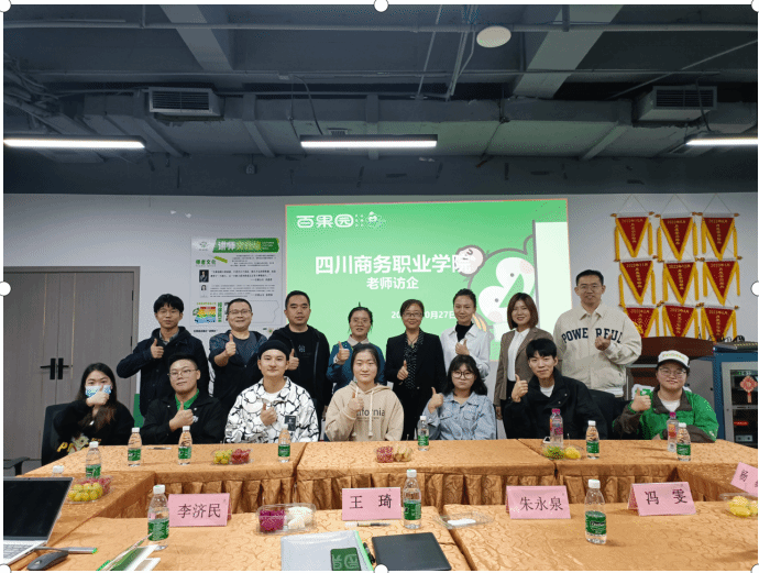 1027日,由经营管理系主任王琦一行前往了深圳百果园有限公司成都分公司走访企业调研,探访2021级我系在百果园课程综合实训的学生。参加访问的还有来自重庆电力高等专科学校访问学者杨易老师。
