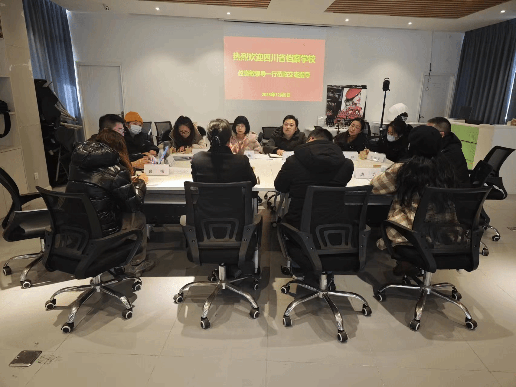 会上,招生就业处谢一韦、教务处边苏两位老师分别就招生宣传、学籍管理等问题与档案校领导老师进行交流讨论。