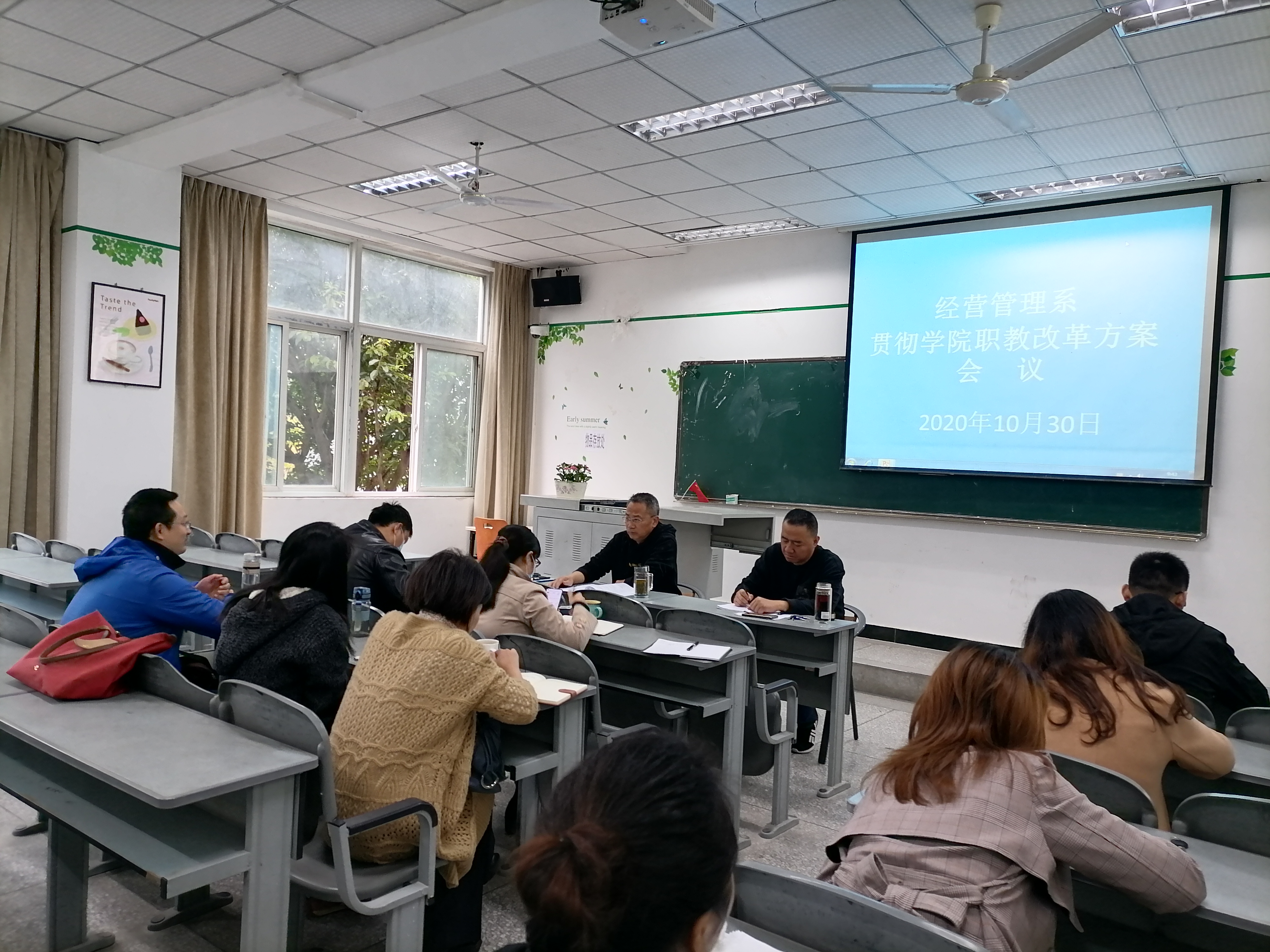 2020年10月30日上午9:30分,经营管理系召开学习《学院贯彻< 四川省职业教育改革实施方案>工作方案》专题会,会议由系主任梁栋同志主持,全系行政人员、各专业负责人参加了会议。
