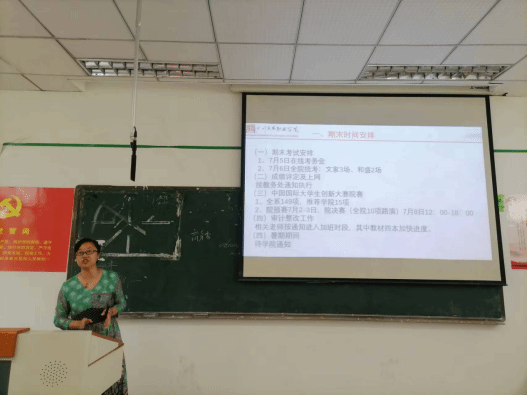 会上,王琦对本学期末考试的安排进行了部署,要求大家遵守学院考试规则,认真对待,严格监考,圆满完成任务。重点汇报了本学期我系完成的工作业绩,对大家团结协作,辛勤工作,认真负责的态度给予了充分的肯定。针对教材征订的要求,王琦强调,全体教师要高度重视,严格按照学院教材征订程序开展有序征订。
